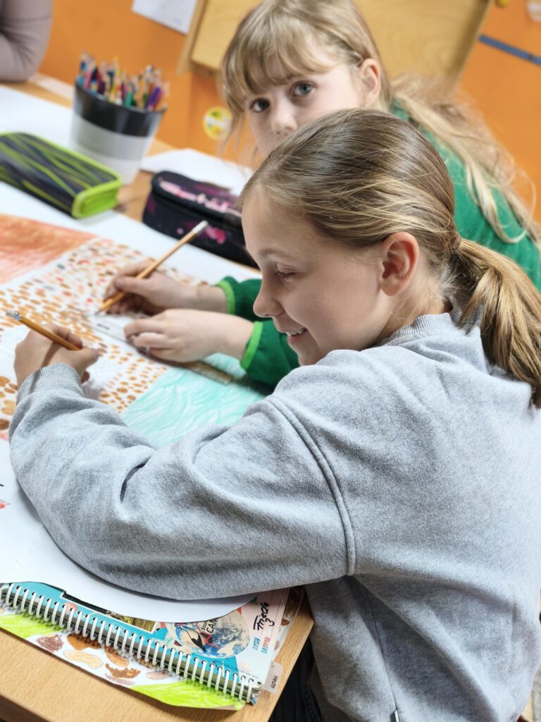 Während der Woche wurden erstaunliche, persönliche und wahrhaft beeindruckende Kunstwerke geschaffen, sodass der Gallery Walk am Freitag als krönender Abschluss einer kreativen Woche individuelle Entstehungsprozesse abbilden und die Arbeit der Kinder wertschätzend betrachtet und genossen werden konnte.