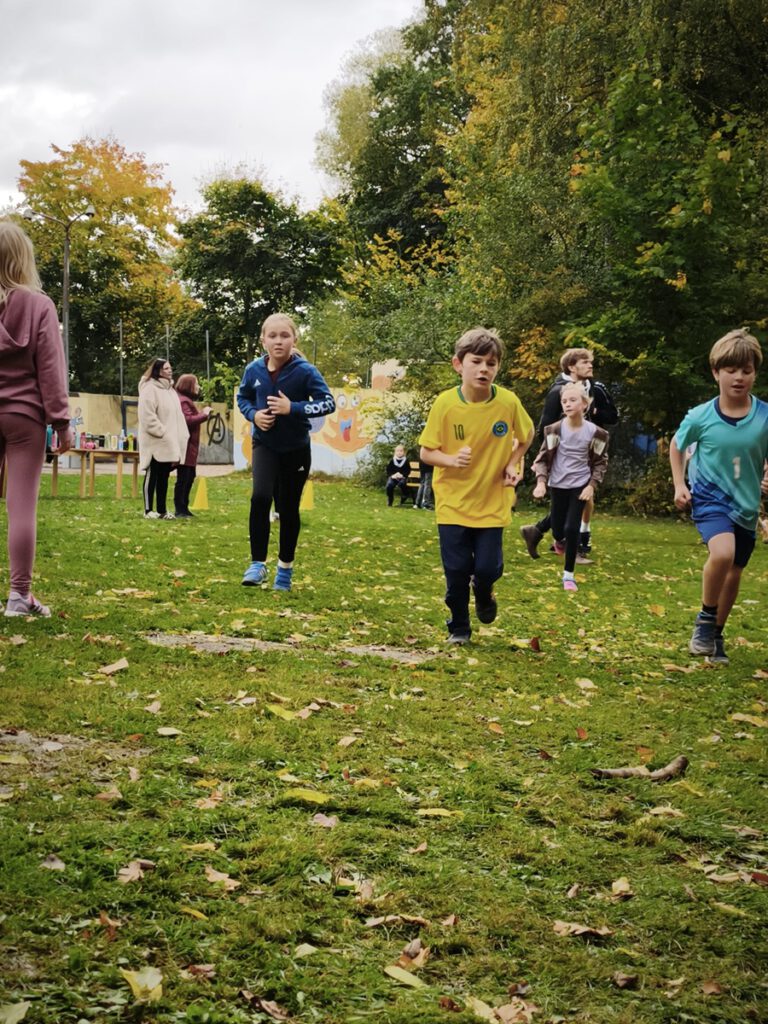 Gemeinsam eine Stunde laufen – das ist jedes Jahr das Ziel vieler Schülerinnen und Schüler an der Storchenschule. In unserem Park hinter der Schule geht es dann Runde um Runde zwischen Bäumen hindurch, vorbei an der Getränkestation und getragen von motivierender Musik. Das Laufabzeichen ist abgelegt, wenn 15 min (Stufe 1), 30 min (Stufe 2) oder 60 min (Stufe 3) in einem beliebigen Tempo ohne Pause gelaufen wurde. Wie passend, dass die Sonne heute die Läufer begleitete und die bevorstehenden Herbstferien einläuten konnte – alle Teilnehmer können sehr stolz auf sich sein.