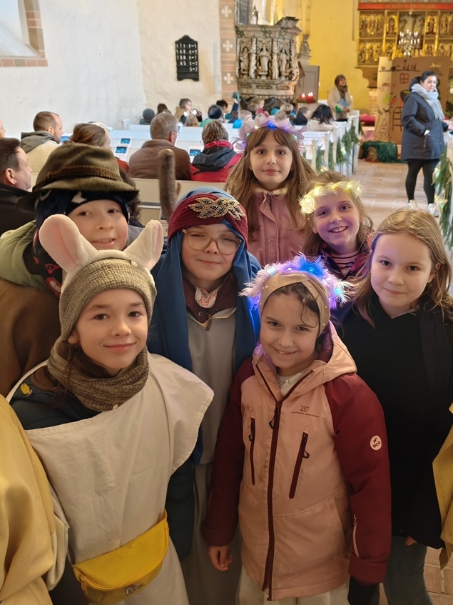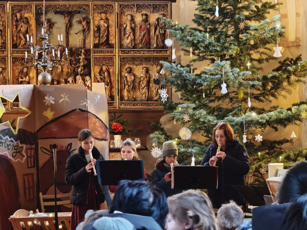 Die drei Camminer Glocken läuten. Weit hörbar laden sie zum diesjährigen Weihnachtsgottesdienst der Storchenschule. Die Kinder sind aufgeregt – viele sind beteiligt, alle freuen sich auf die bevorstehenden Weihnachtsferien. Der letzte Schultag im Jahre 2025 neigt sich dem Ende. Auch das Licht der Liebe ist nah – das lang ersehnte Fest, Heiligabend, steht kurz bevor. Davon singen die Schüler*innen der Klasse 3 beim Einzug, begleitet von Dorle Bludau an der Geige und Alexander Bahr am Klavier und mit strahlenden Kerzen in ihrer Hand: Ein Licht weist den Weg, der zur Hoffnung führt.