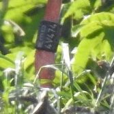 © Stefan Kroll; Nahaufnahme des Ringes des männlichen Storches DEW 4V474. Er wurde 2022 in Niedersachsen beringt.