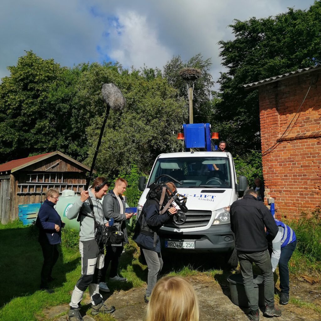 Besonders aufregend war auch das anwesende Kamerateam des NDR, das die heutige Beringung aller Störche aus dem Landkreis Rostock begleitete.